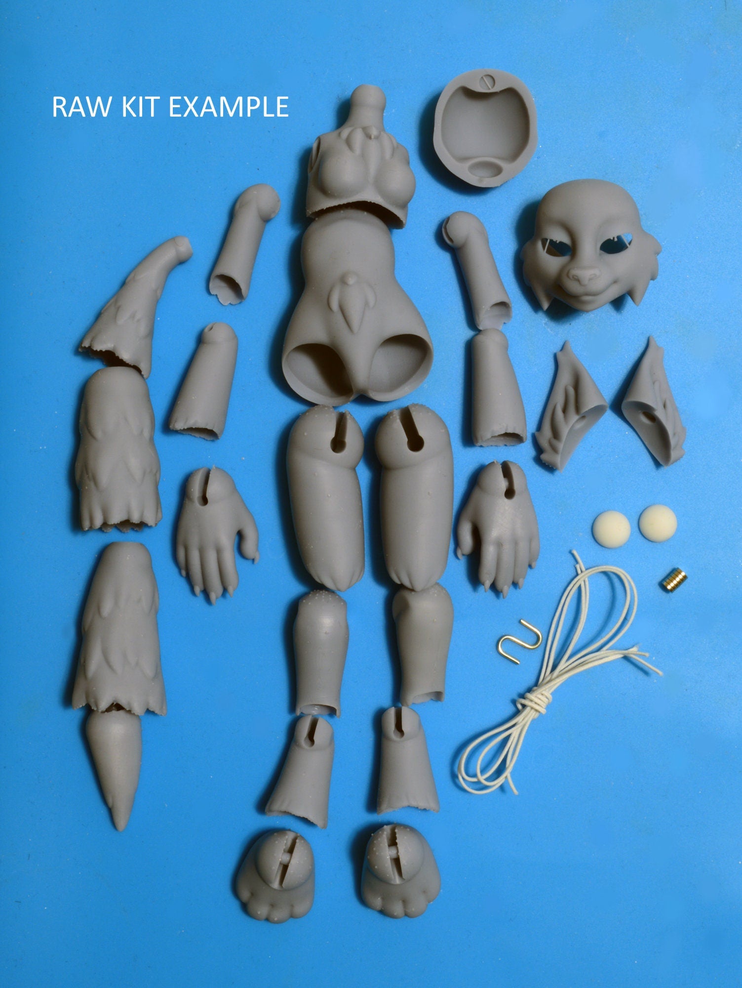 Raw kit: Includes unassembled raw parts, magnets, elastic, and a hook for the head