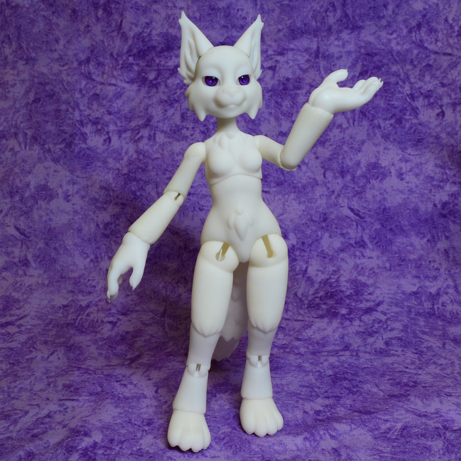 This is for a blank doll! About 8 inches tall with ears, 3D printed in ABS-like resin. Made to fit 10 mm eyes, a pair of blank eyes will be included. Her ankles have lock points to make holding a pose easier. This is a delicate toy not meant for children.